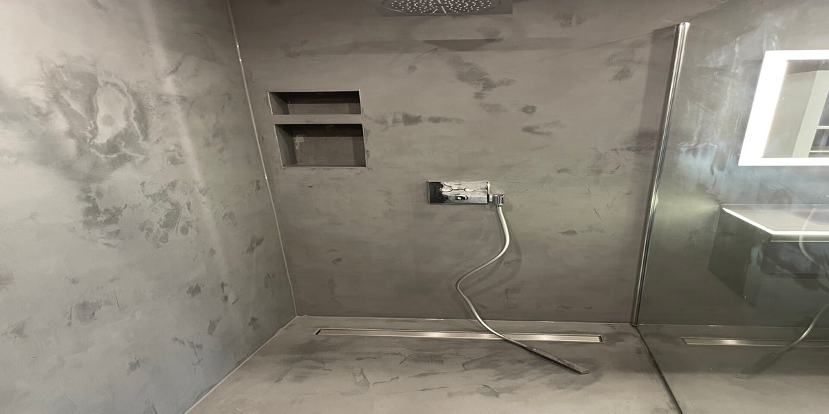 Beton Ciré is zeer geschikt om uw badkamer wanden mee af te werken, zelfs in het gedeelte waar u doucht.